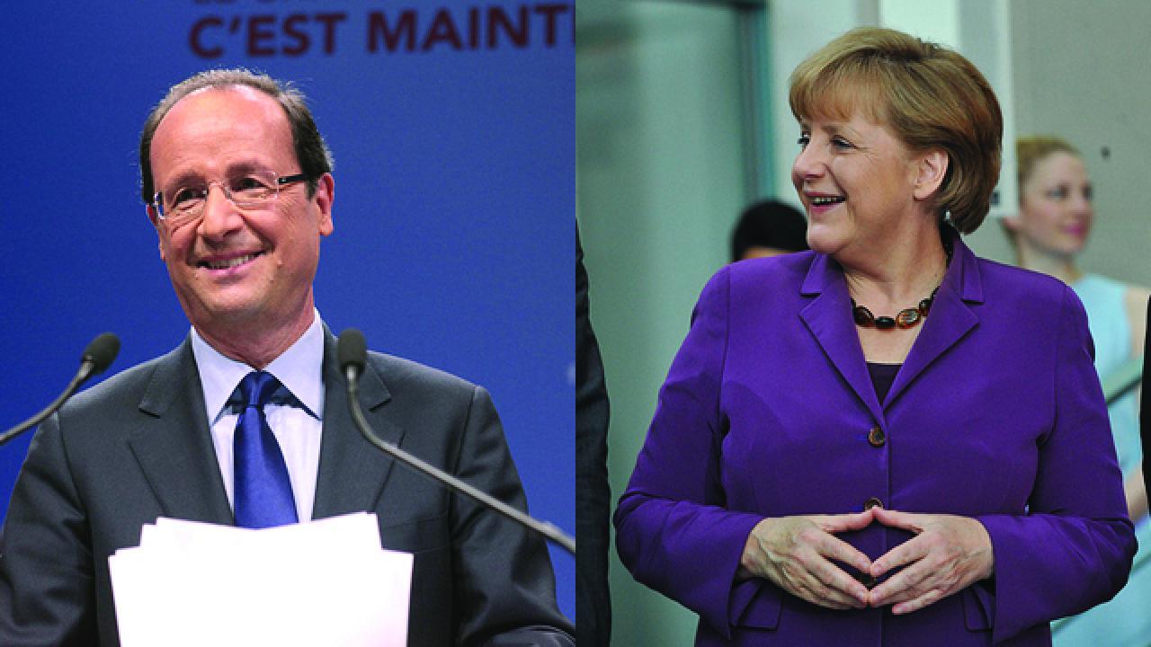 Knappt hade Marseljäsen tystnat under Triumfbågen innan Hollande satte sig på flyget för att göra sin första utrikesresa. Destination: Berlin. Angela Merkel tar emot Hollande med ett ordentligt valnederlag i ryggsäcken och med Hollandes vallöften ringande i öronen: mindre åtstramning och ”mer tillväxt”.